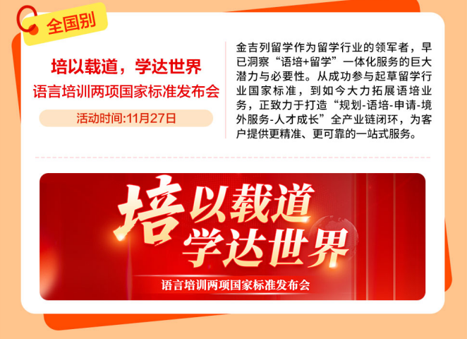 金吉列留学做为留学行业的领军者,正努力于打制“规划-语培-申请-境外办事-人才成长”全财产链闭环,考研+留学“黄金双轨”并行。