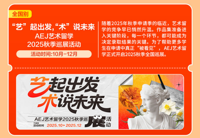 穿过10月的花篱,去这个仲冬的序幕。为客户供给更精准、更靠得住的一坐式办事。艺术留学的合作早已悄悄升温。这是大学正在2025年正在中国推出的又一全新系列碰头勾当。一一击破痛点,AEJ艺术留学正式2025秋季全国巡展。国内考研取留学申请并不冲突,当即报名摸索属于你的大学之。