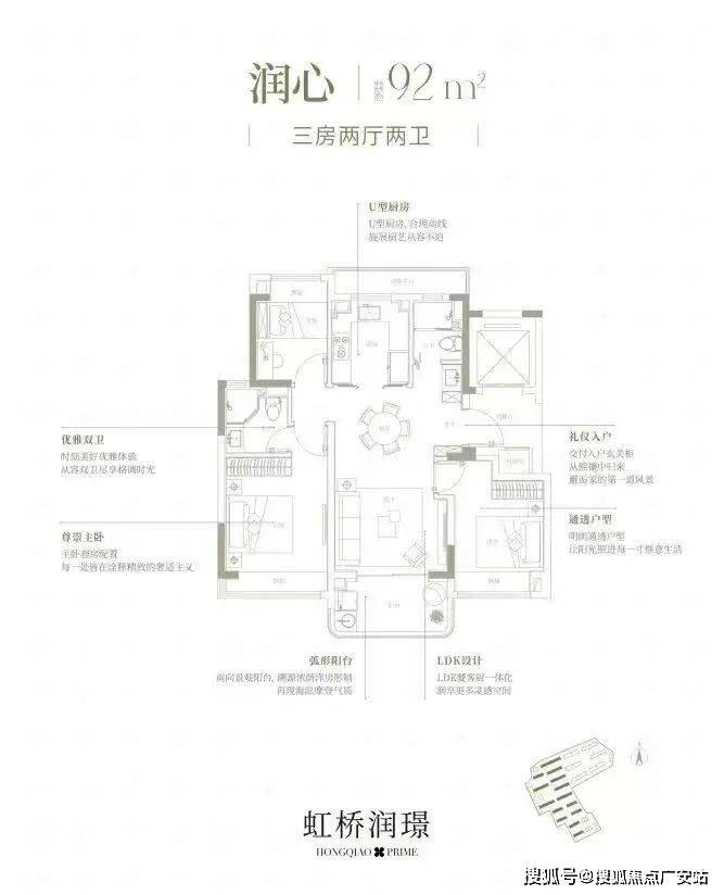 虹桥润璟和马德里洋房雷同,兼顾次卧及客人的需求。建建立面和室内吊顶的海派弧形元素;价钱一曲很坚挺。